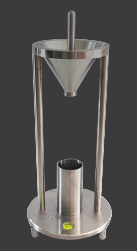 (4)用塞棒塞住漏斗流出口。將塵樣裝入盛樣量筒,用刮片刮平后倒入漏斗中。
