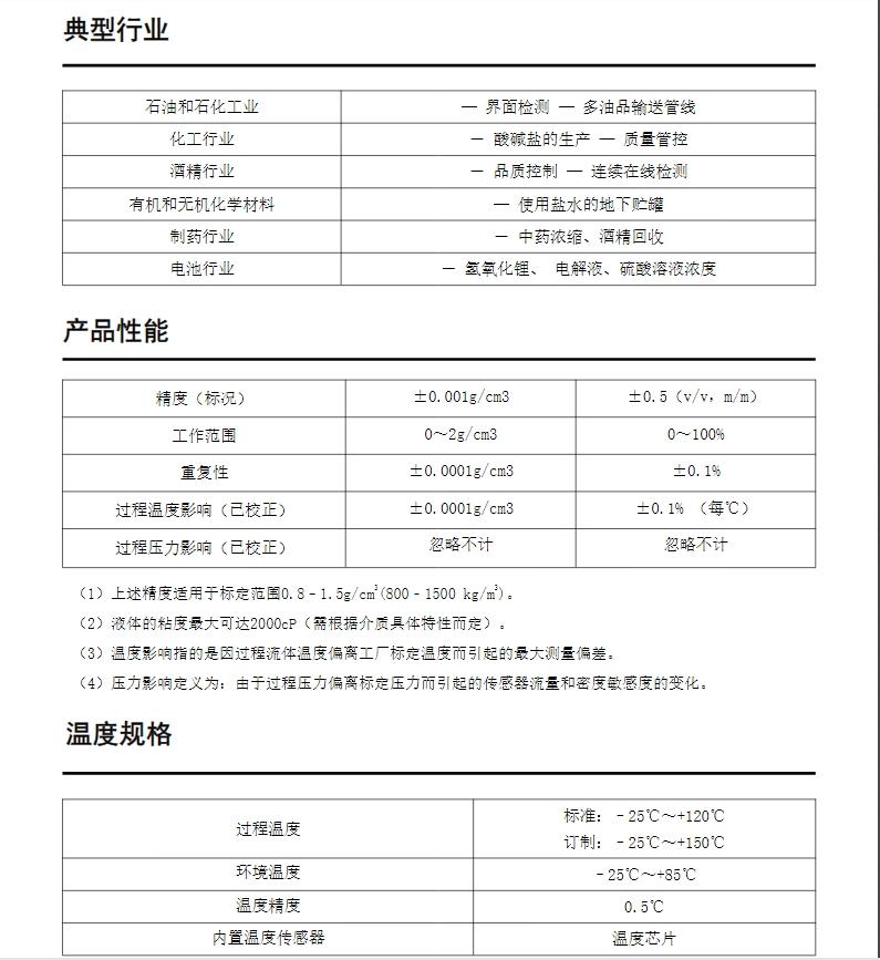 智能在線密度和濃度儀表為一種只需要極少量維護的堅固而可靠的直插型儀表,它們能夠提供完全一體化的即插即用,免維護式密度測量。 高性能的通用型密度計 高精度衛(wèi)生型密度計