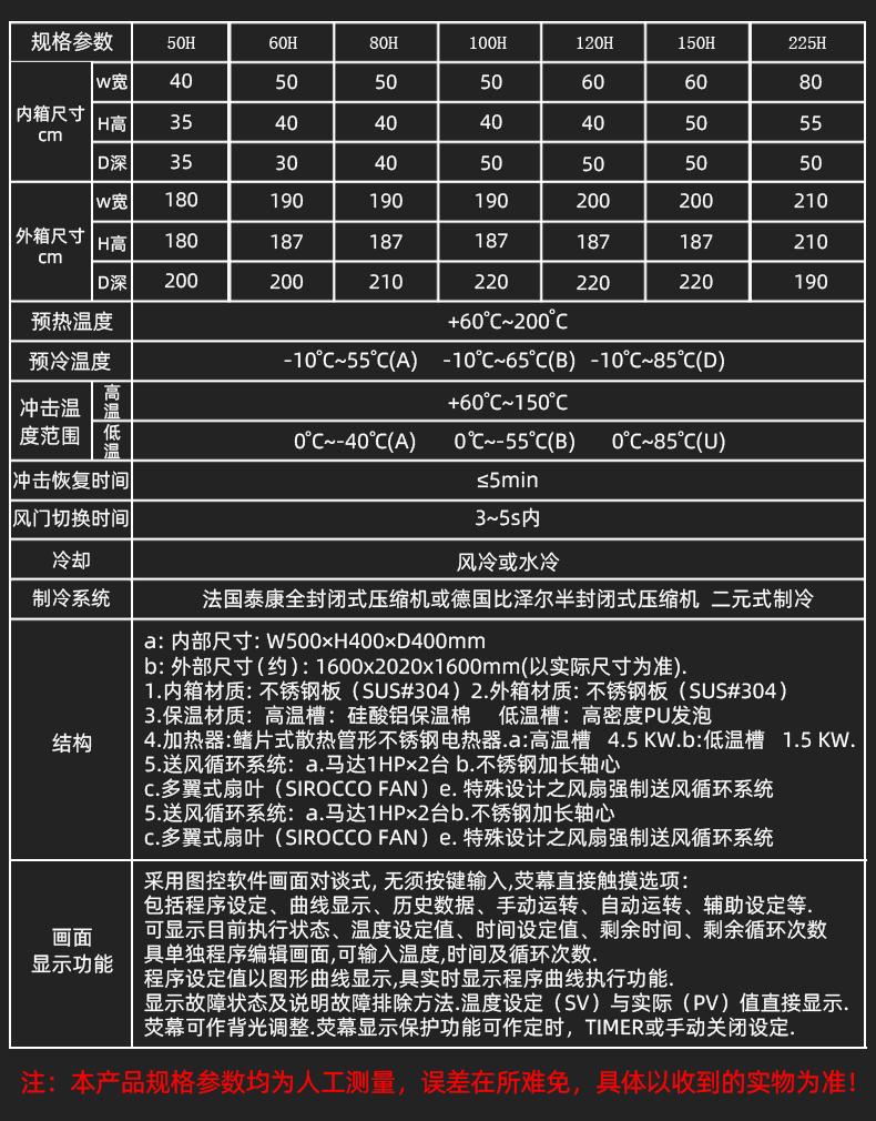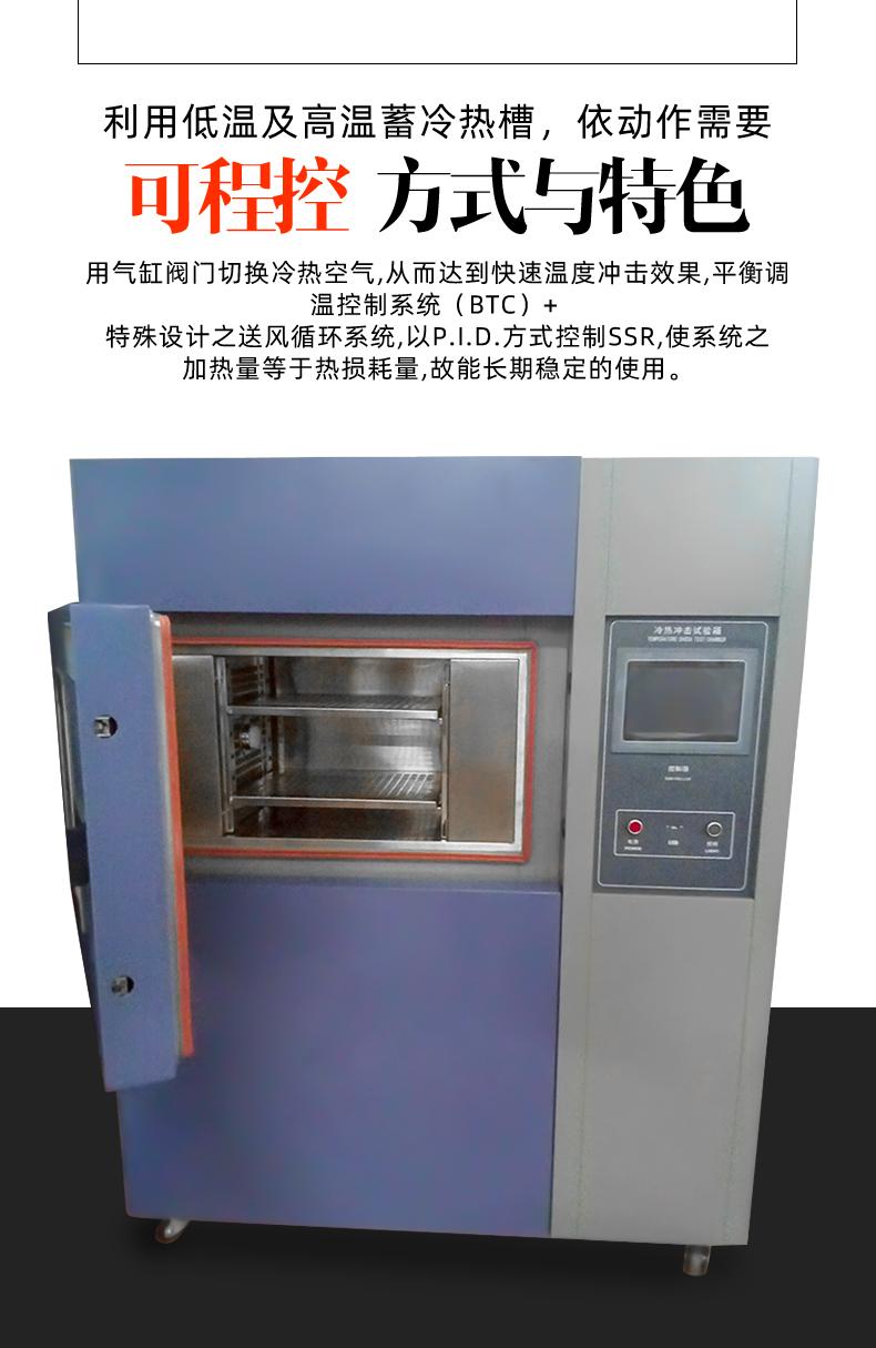 本系列冷熱沖擊試驗機主要用于測試材料對極高溫或極低溫的抵抗力,這種情況類似于不連續(xù)地處于高溫或低溫中的情形,冷熱沖擊試驗?zāi)苁垢鞣N物品在最短的時間內(nèi)完成測試。熱震中產(chǎn)生的變
