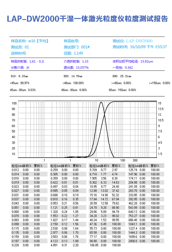 LAP-DW2000是我公司傾力研發(fā)的新產(chǎn)品,自上市以來贏得了廣大客戶的一致好評。LAP-DW2000采用先進的Mie式散射原理和匯聚光傅立葉變換光路。