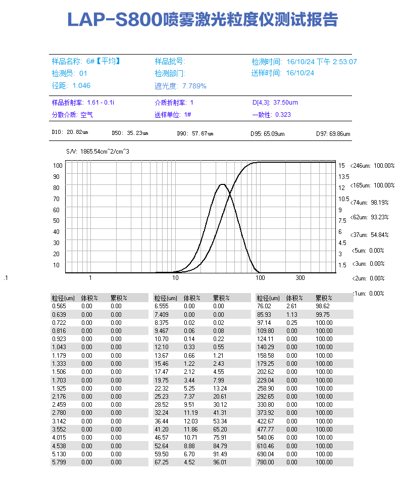 顯示模板 | 粒徑區(qū)間求百分比,以滿足不同行業(yè)對(duì)粒度測(cè)試的表征方式。徑距、一致性、區(qū)間累積等等 |