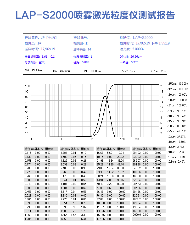 分析模式 | 包括自由分布、R-R分布和對數(shù)正態(tài)分布、按目分級統(tǒng)計模式等,滿足不同行業(yè)對被測樣品粒度統(tǒng)計方式的不同要求 |
