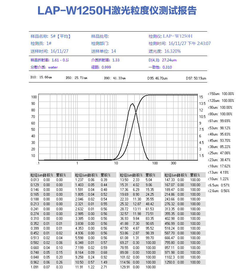 LAP-W1250H是我公司傾力研發(fā)的新產(chǎn)品,自上市以來贏得了廣大客戶的一致好評(píng)。LAP-W1250H采用先進(jìn)的Mie氏散射原理和會(huì)聚光傅立葉變換光路。